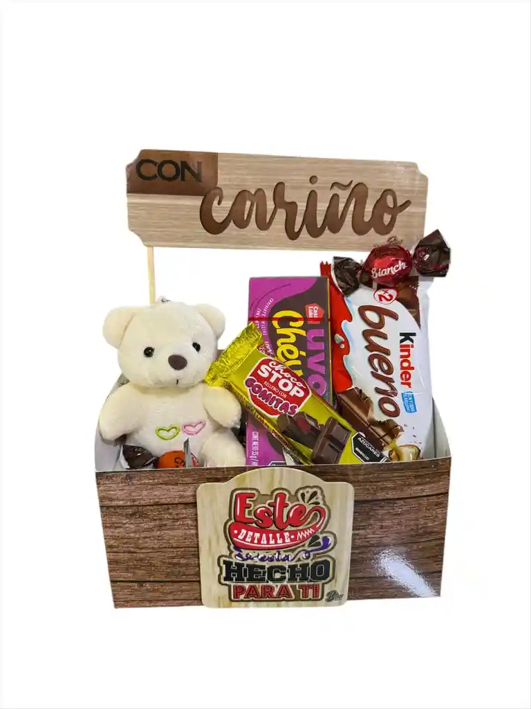 Linda Ancheta con dulces y peluche pequeño de llavero ideal para reglo de toda ocacion regalo feliz dia, obsequio