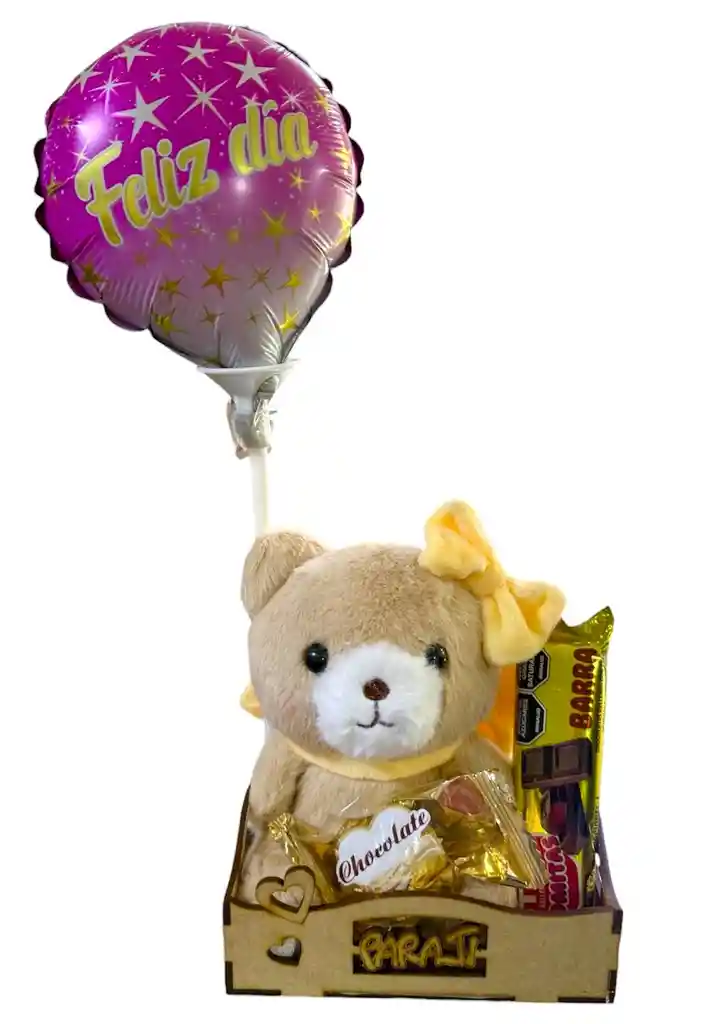 Ancheta en cajita de madera con peluche pequeño y dulces ideal para regalo san valentin ancheta san valentin