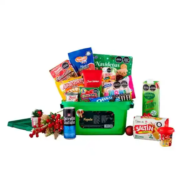 Contiene 15 Unidades. La Ancheta Especial ha Sido Cuidadosamente Seleccionada Para Ofrecer Una Variedad de Productos Deliciosos y de Alta Calidad Ideales Para Compartir en Cualquier Ocasión Especial. Masmelos Millows 75 g + Néctar Manzana Alpina 1000 mL + Arequipe Alquerida Tradicional Vaso 150 g + Duraznos Cuisine & Co Mitades Almíbar 410 g + Natilla Kassel Arequipe 300 g + Salchicha Viena Limón Zenu Edición Especial 150 g + Maní Japonés Manitoba 150 g + Galleta Oreo Original 135 g + Galletas Navideñas Surtidas 200 g + Galletas Saltinas Crackers 90 g + Sopa Instantánea Fideo Ajinomen Pollo 80 g + Cerveza Estrella Galicia 0.0% Lata 330 mL + Gelatina Frutino Fresa 14 g + Café Juan Valdez Cumbre Tostado Molido 70 g + Caja Monserrat no. 1 Media 11 L - Fogata 2024.