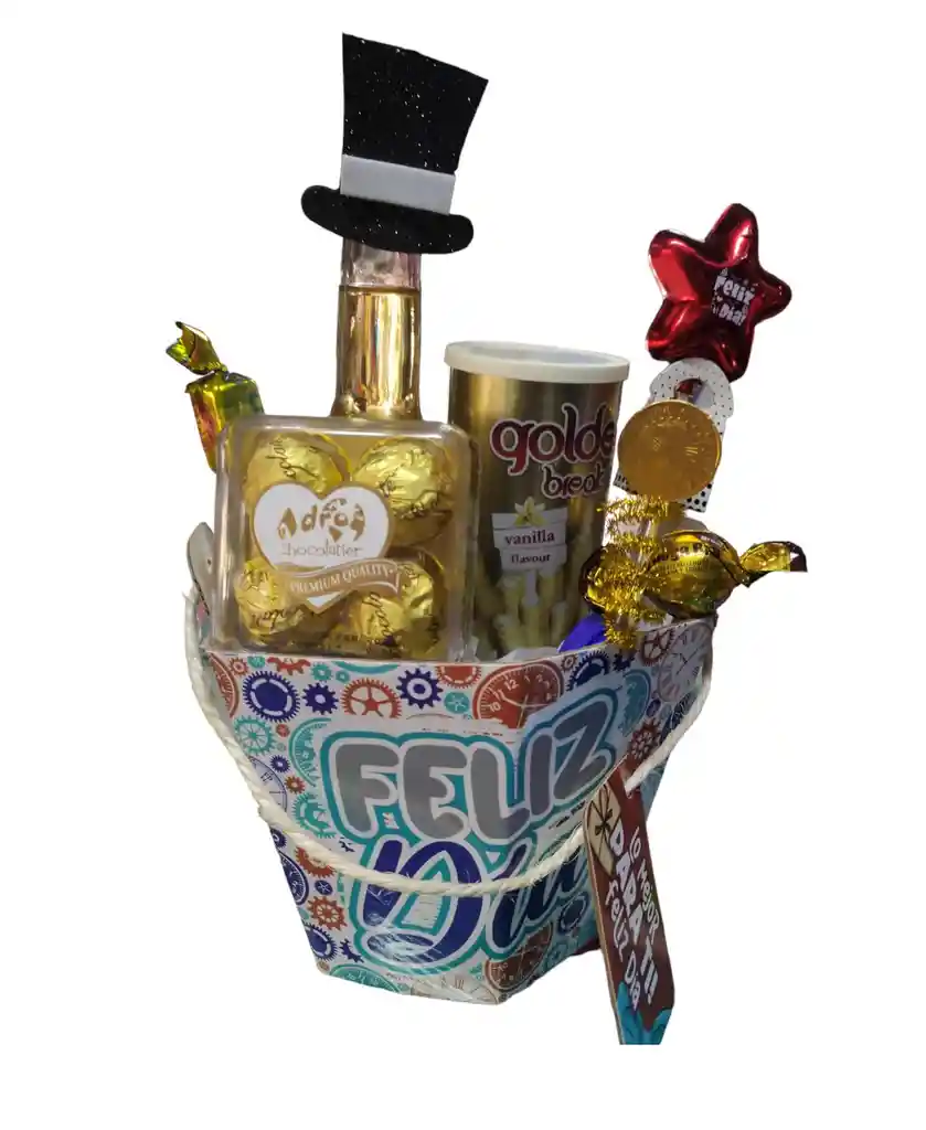 Ancheta Hombre Toda Ocasión Caja Cartón Feliz Dia ¡¡¡ EXCELENTE OBSEQUIO PARA SORPRENDER !!! Un regalo elegante, sencillo, económico y muy bonito En cualquier momento y celebración puedes sorprender a alguien especial INCLUYE: -1 Cerveza Coronita -1 Barquillo Golden Break Vainilla -1 Chocolate x4 Adro -1 Choco Stop -1 Chocoball -1 Moneda De Chocolate -1 Pin Metalico Feliz Dia -1 Caja Carton Hexágono Feliz Dia
