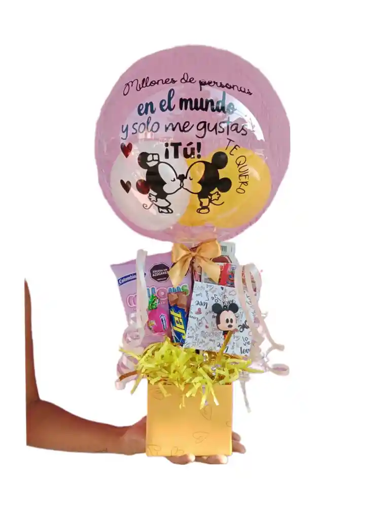 Descripción: Caja cuadrada forrada Globo burbuja personalizado 10 pulgadas mensaje: "Millones de personas en el mundo y solo me gustas Tú, te quiero" ... Paquete de masmelos Mini Nutella Chocolatina jet peq. Barquillo Piazza individual Bombom bum Gomita individual Llavero Mickey mousse goma ... Decoración general Tamaño 55cm alto x 25ancho aprox.