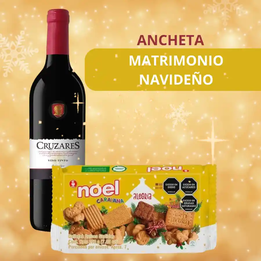 Contiene 2 Unidades. Galleta Navideña 200 g + Botella de Vino Español Tinto Tempranillo 750 mL.