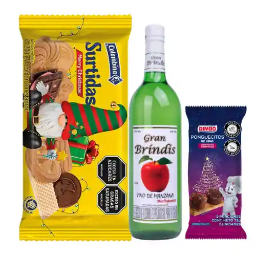 MATRIMONIO VINO MANZANA GRN BRINDIS 750ML + GALLETA COLOMBINA 200GR + PONQUESITO VINO X72GR EMPACADO EN PAPEL CELOFAN