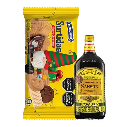 MATRIMONIO VINO SANSON 750ML + GALLETA COLOMBINA 200GR EMPACADO EN PAPEL CELOFAN