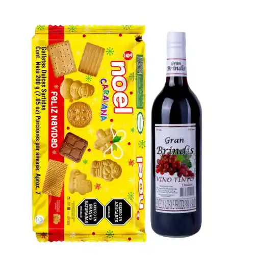 MATRIMONIO VINO TINTO GRAN BRINDIS 750ML + GALLETA CARAVANA NOEL 200GR EMPACADO EN PAPEL CELOFAN