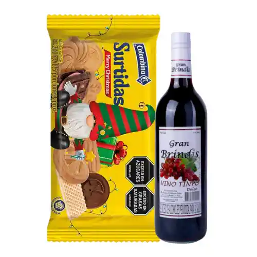 MATRIMONIO VINO TINTO GRAN BRINDIS 750ML + GALLETA CARAVANA NOEL 200GR EMPACADO EN PAPEL CELOFAN