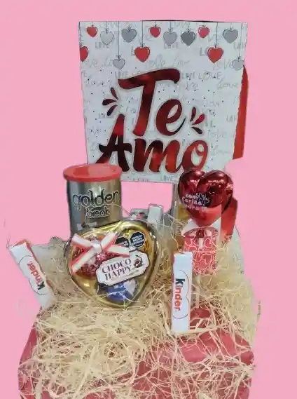ANCHETA MUJER TODA OCACION CAJA GRANDE TE AMO ¡¡¡ EXCELENTE OBSEQUIO PARA SORPRENDER !!! Un regalo elegante, sencillo, económico y muy bonito En cualquier momento y celebración puedes sorprender a alguien especial INCLUYE: -CAJITA DE BARQUILLOS GOLDEN - CORAZON DE CHOCOLATE -KINDER BARRITA-4 UNIDADES -CAJITA DE CHOCOLATE CHOCO HAPPY X3 UNIDADES -PIN PLASTICO FORMA CORAZON