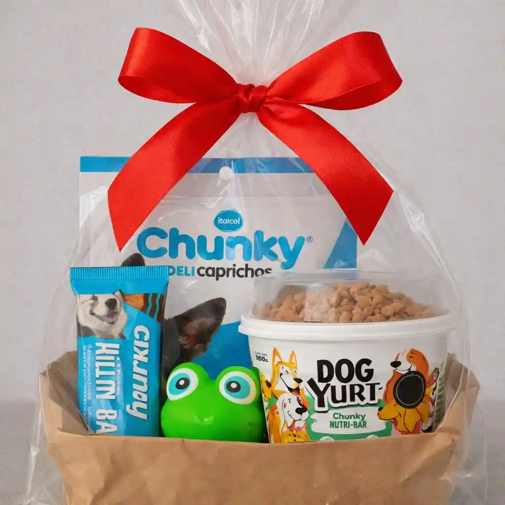 Incluye Delicaprichos, DogYurt y Nutri Bar (snak de chunky) y un juguete de Pet Accessory. Ideales para premiar, nutrir y hacer feliz a tu perro. Una ancheta pensada para celebrar momentos especiales con sabor, diversión y mucho amor