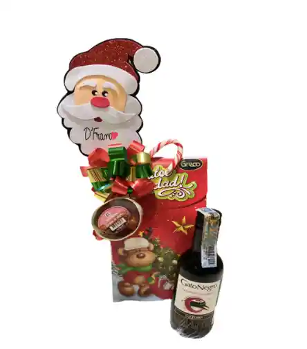 Ancheta navideña incluye: Manjar Blanco 1 Und + Pin de Navidad 1 Und + Bastón de Dulce 1 Und + Vino Gato Negro 1 Und + Caja de galletas navideña La Ancheta Viene Empacada con moño regalo, puedes dejar un mensaje para la tarjeta.