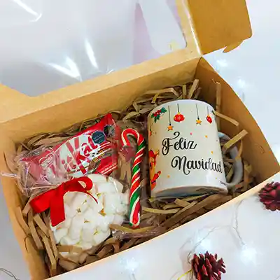 Hermosa caja navideña perfecta para relagar. Contenido: vaso de ceramica navideño, unos deliciosos masmelos , un baston de caramelo y un exquicito chocolate kitkat. Antes de realizar tu pedido comunícate al WhatsApp 3142273513 para una mayor atención personalizada y ultimar detalles.