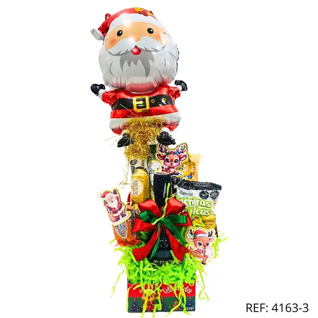 Sorprende en esta Navidad con una ancheta especial que combina sabor y celebración. Incluye JP Chenet, achiras, Chocorramo, Ferrero maní, M&M’s y un globo de Papá Noel para un toque festivo único. Ideal para regalar, compartir y endulzar momentos inolvidables en Navidad.