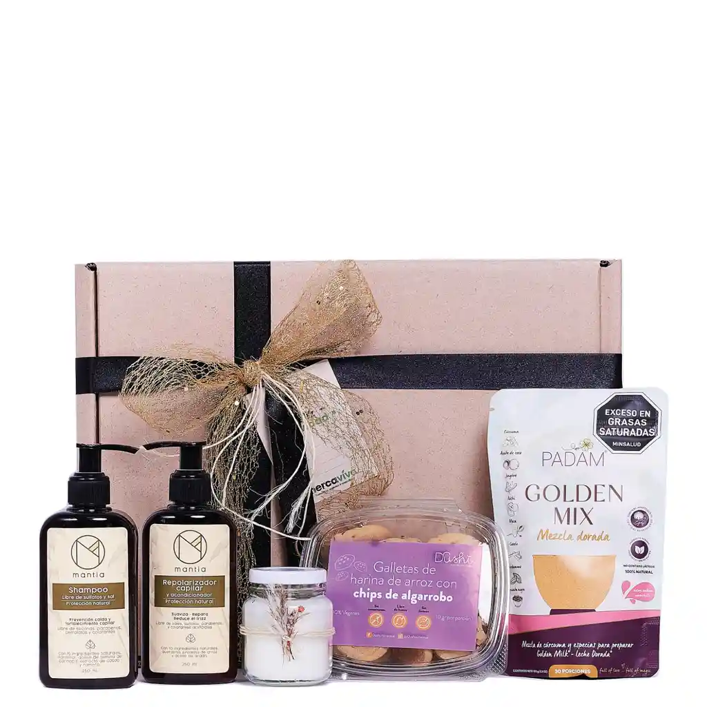 Ancheta navideña Beauty Care. Un detalle ideal para una tarde o noche de Spa! Contiene todos los productos ideales para tu cuidado personal. Regala una experiencia única y saludable. ¡Compartir, sorprender, sentir y disfrutar un regalo especial en Navidad! Productos Ancheta navideña Beauty Care: Golden Milk Padam x 100 gr Shampoo Manttia x 250 Ml Repolarizador Capilar Manttia x 250 Ml Galletas de Harina de Arroz y Chips Dushi x 150 Gr Vela Mediana Tarjetas, cintas y decoración Caja de Cartón