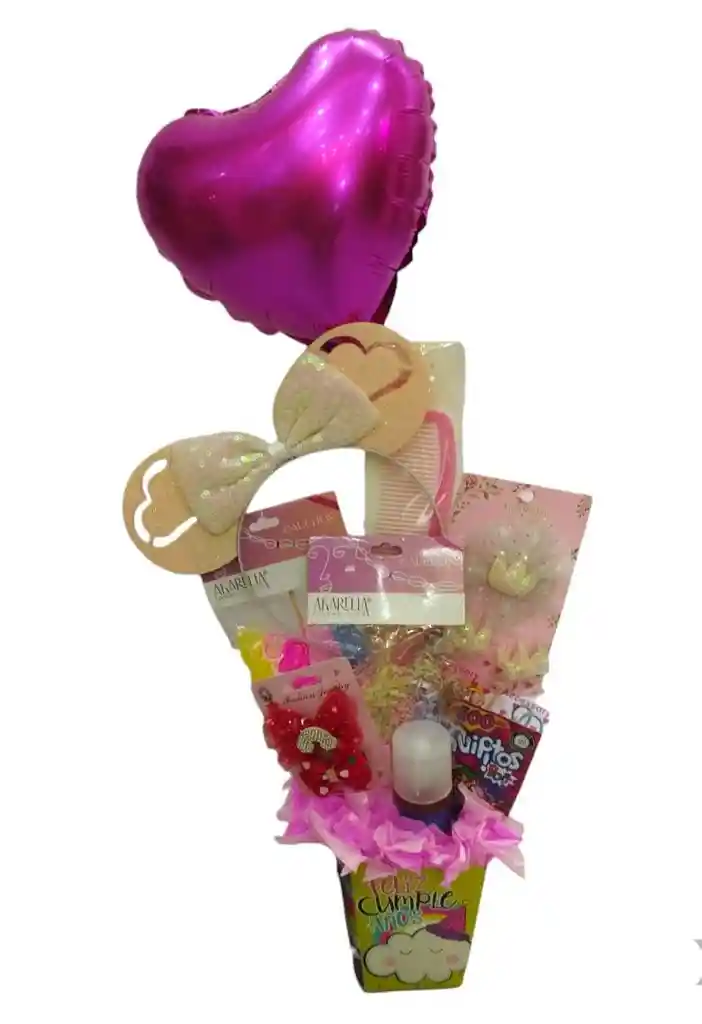 Anchta Niña Barbie contiene: Peine Rosado Splash Pequeño Niña Quipitos 8 gr 2 Cauchos Gruesos Surtidos Diadema con Orejitas Rosado Pinzas Grandes Blancas Globo Mediano Metalizado Dos Coleros Pinzas Secillas Caja y Decoración
