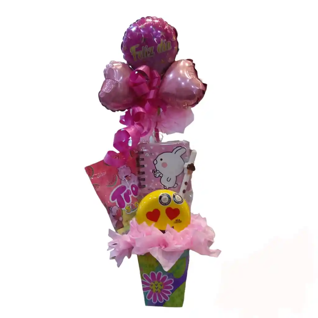 LINDA ANCHETA PARA NIÑA, IDEAL PARA REGALAR EN OCACIONES ESPECIALES . INCLUYE: AGENDA MINI KAWAI ESFERO CHOCOLATE AROMATICO TINTA DE GEL PASTELILLO CHOCOLATES SURTIDOS RELLENOS EN CAJA DE EMOJI ENAMORADO PAQUETE DE GOMAS SANDIA TROLLI CAJA DECORADA GLOBO METALIZADO FIGUTAS (EL GLOBO PUEDE PERSONALIZARCE CON NOMBRE Y MENSAJE O PARA LA OCACION QUE REQUIERA EL CLIENTE)
