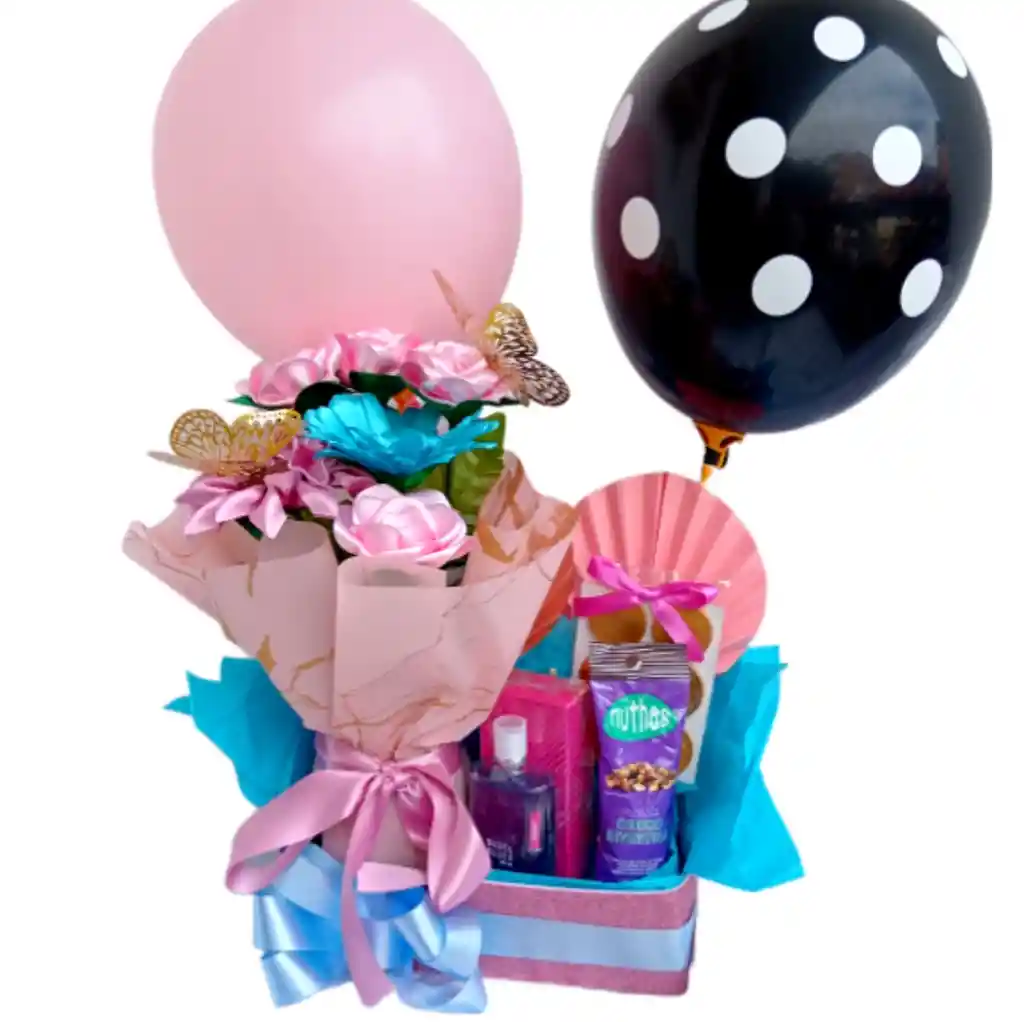 ¡Sorprende a tus seres queridos con este hermoso set de regalo que incluye un ramo de flores, rosas y gerberas eternas y un perfume en tono brisas oceno! Perfecto para cualquier ocasión especial, este regalo con el sabor irresistible de los frutos secos y el chocolates ¡Hazles sentir especiales con este detalle único
