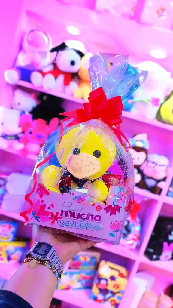 un regalo tierno y delicioso Esta hermosa ancheta incluye: 1 peluche suave y adorable Mix de dulces y chocolates seleccionados Caja, empaque decorativo y un hermoso moño, lista para regalar 💝 Perfecta para endulzar y dar un lindo detalle en amor y amistad 🎁 Presentación bonita y lista para entregar 📌 Ideal para sorprender en amor y amistad sin complicaciones SE ENVIAN PELUCHES SEGUN DISPONOBILIDAD, TODOS LINDOS Y DE BUENA CALIDAD.