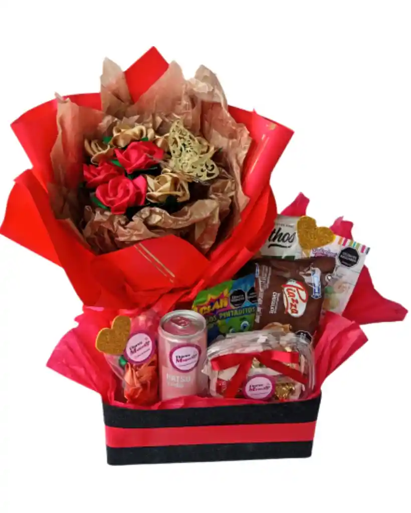 Descubre nuestra Canasta regalo con flores y snacks, el regalo ideal para cualquier ocasión especial. Esta hermosa canasta combina la elegancia y colorido de las flores eternas con una selección deliciosa de snacks para disfrutar al máximo. Perfecta para sorprender a esa persona querida, ya sea en cumpleaños, aniversarios o celebraciones.