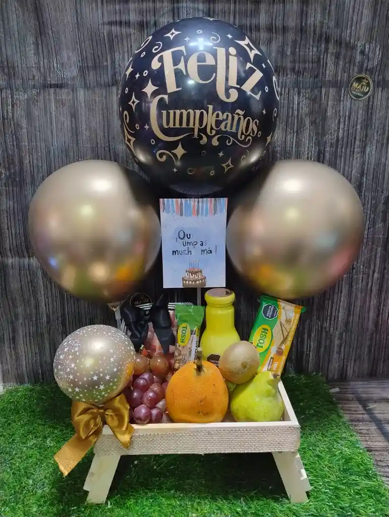 ANCHETA FRUTAL CON GALLETAS DE SODA ,TE HATSU SIN AZUCAR ,FRUTA GRANOLA EN BARRA