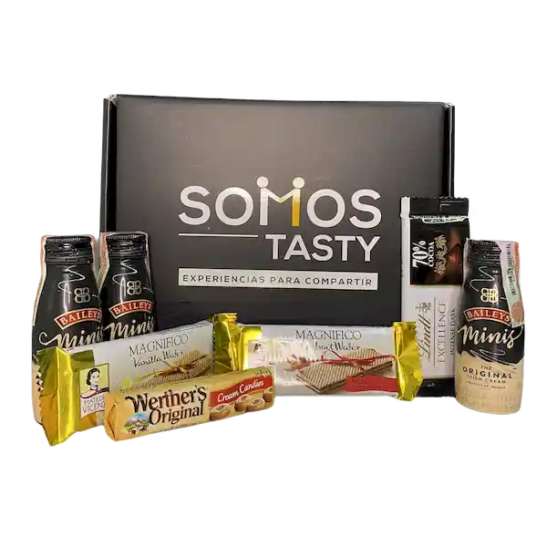 Este Tasty Regalo De Somos Tasty Incluye Los Siguientes Productos: 3 Mini Baileys De 100 Ml C/U, Chocolate Lindt 70% Cacao De 35G, Galleta Matilde Vicenzi Wafer De Vainilla 25 Grs, Galleta Matilde Vicenzi Wafer De Avellanas 25 Grs Y Caramelos Werther.?S Original