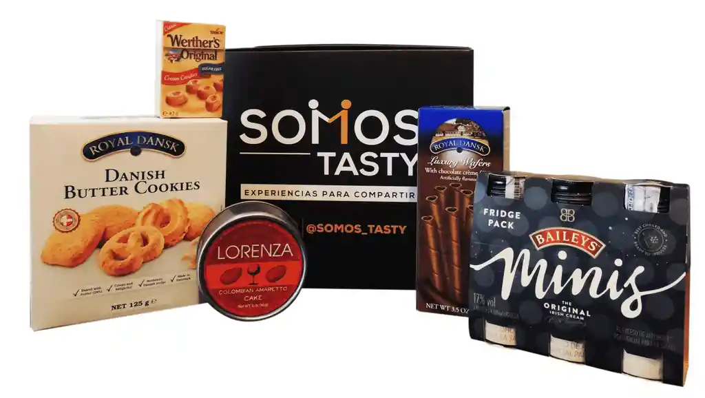 El Kit De Regalo Somos Sinceros Incluye: Tripack Crema De Whisky Baileys Mini 100 Ml C/U . Galletas De Mantequilla Royal Dansk Dinamarca . Torta De Amaretto Colombia . Barquillos De Chocolate Royal Dansk 100 Gr Dinamarca . Caramelo Werther'S Original Sugar Free 42 g Alemania El exceso de alcohol es perjudicial para la salud. Ley 30 de 1986. Prohíbase el expendio de bebidas embriagantes a menores de edad. Ley 124 1994