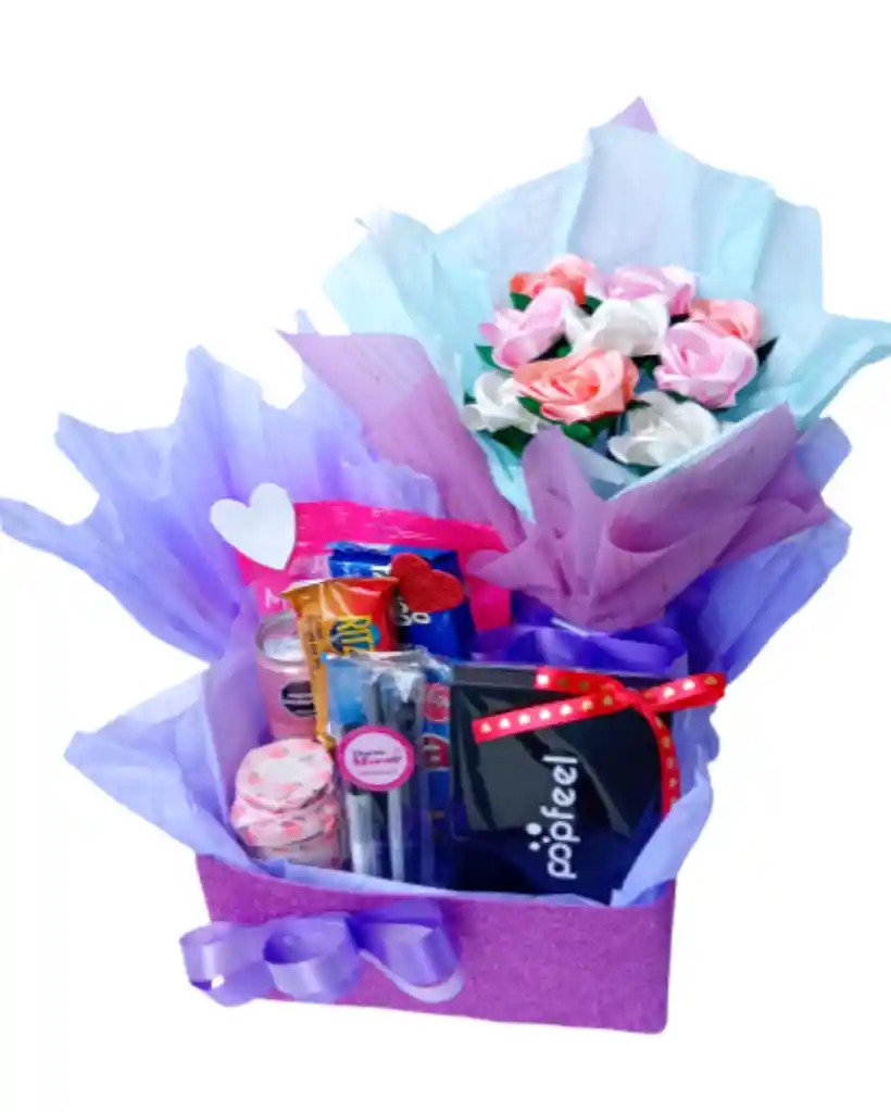 Celebra a esa persona especial con nuestra Ancheta Súper Celebración, un detalle que enamora. Incluye maquillaje selecto, una vela aromática que crea el ambiente perfecto, un delicado ramo de flores eternas y deliciosos comestibles para consentir y demostrar cuánto la amas. Un regalo único para momentos inolvidables, ¡listo para sorprender, envio inmediato