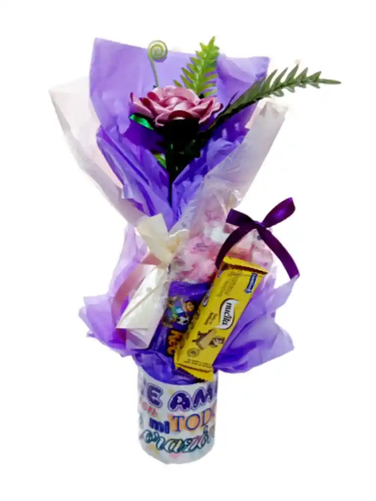 Ancheta regalo con flor eterna y taza que expresa amor con la frase 'te amo'. Perfecta para empezar tu día con un mensaje positivo o para regalar a alguien especial. Hecha con materiales de alta calidad, esta taza es ideal para cualquier ocasión.