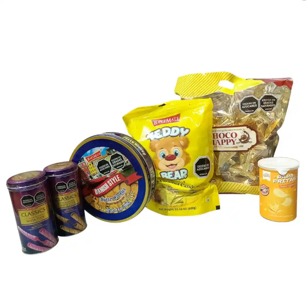 La Ancheta Tradición Regalo Navideño de la marca DEL CIELO es la opción perfecta para compartir momentos especiales en esta temporada festiva.Esta selección cuidadosamente elaborada incluye seis elementos que evocan la esencia de la Navidad, ideal para sorprender a familiares y amigos. Cada componente de la ancheta ha sido elegido para ofrecer una experiencia sensorial única, combinando sabores y texturas que deleitarán a los paladares más exigentes. Su presentación elegante y festiva la convierte en un detalle ideal para cualquier ocasión, desde reuniones familiares hasta intercambios de regalos en la oficina. Incluye: 1 bolsa choco happy x 25 unidades 1 bolsa dulces masticables teddy 600gr 1 tarro galletas BakeMate 280gr 2 tarros barquillos 114gr c/u 1 papas pequeñas sabor queso 45gr
