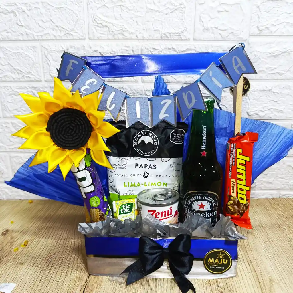 Ancheta con Soda ,malta ,nutella jef, papas, Chokis, montblanc, MM. (Color y globo disponibilidad de tienda)
