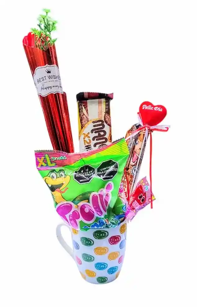 Ancheta vaso mug pocillo san Valentín amor dulces rosa incluye (pocillo, rosa, corazón. barquillo, galleta y gomitas)
