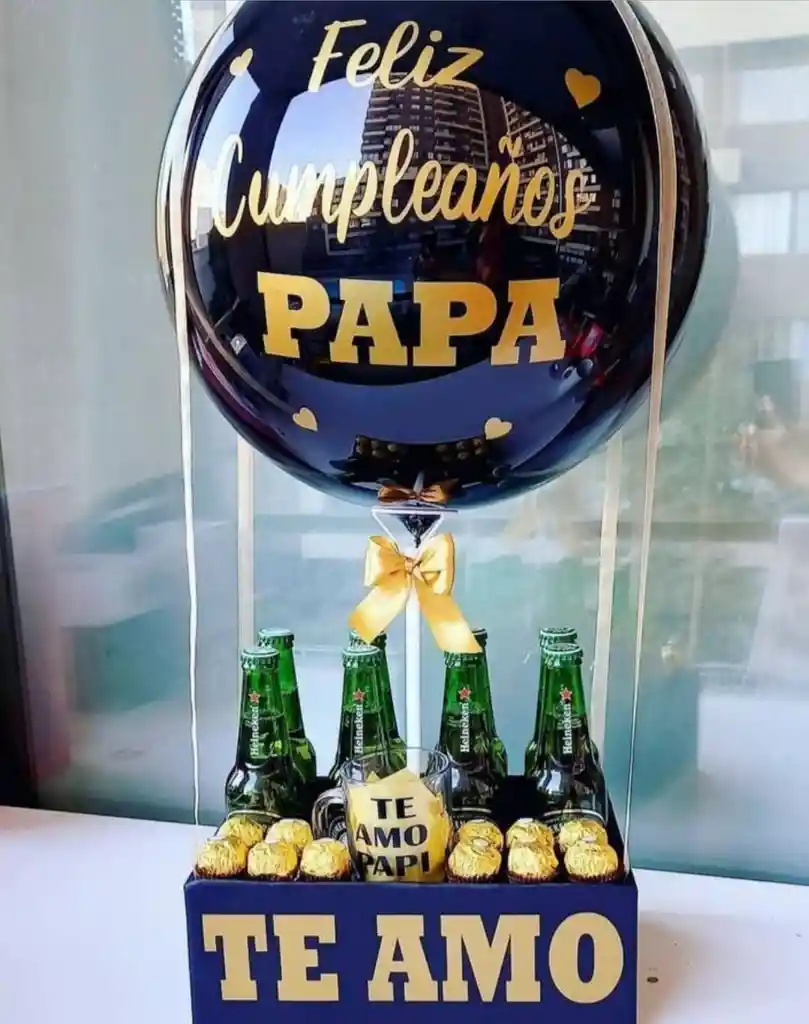 Anchetas, desayunos sorpresa y detalles para cumpleaños, aniversario, amor y amistad, Día de la Madre, Mujer, Niño, Navidad y San Valentín. Incluye flores, chocolates, peluches y fresas con chocolate. Contenido: - Caja - Chocolates - 8 Cervezas - Vaso -Globo - Tarjeta personalizada Adiciones: - Globo burbuja marcado 15,000 - Arreglo floral 50.000 - Peluches desde 20.000
