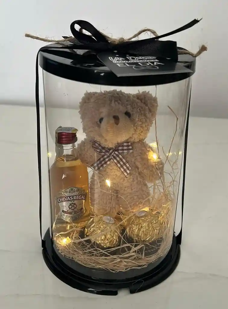 ANCHETAS DETALLES O REGALOS PARA HOMBRE CILINDRO LLAVERO OSO + CHIVAS REGAL MINI + CHOCOLATES FERREROS COD.1040-13