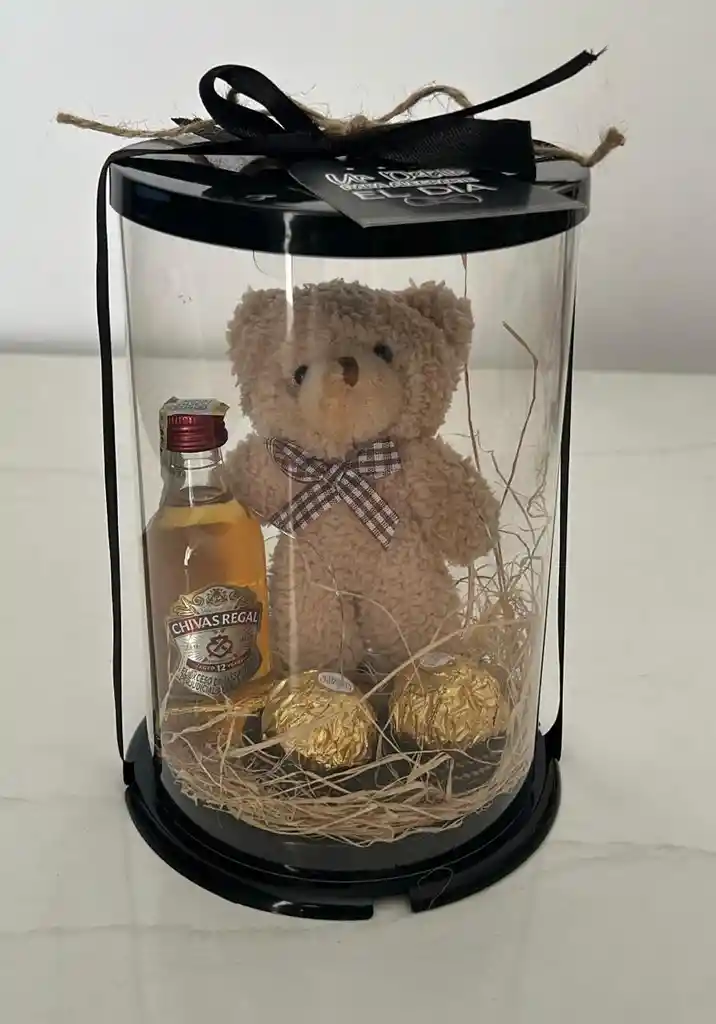 ANCHETAS DETALLES O REGALOS PARA HOMBRE CILINDRO LLAVERO OSO + CHIVAS REGAL MINI + CHOCOLATES FERREROS COD.1040-13