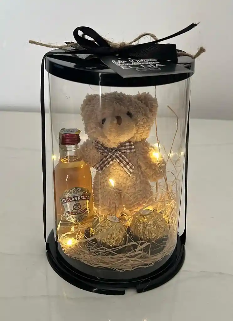 ANCHETAS DETALLES O REGALOS PARA HOMBRE CILINDRO LLAVERO OSO + CHIVAS REGAL MINI + CHOCOLATES FERREROS COD.1040-13