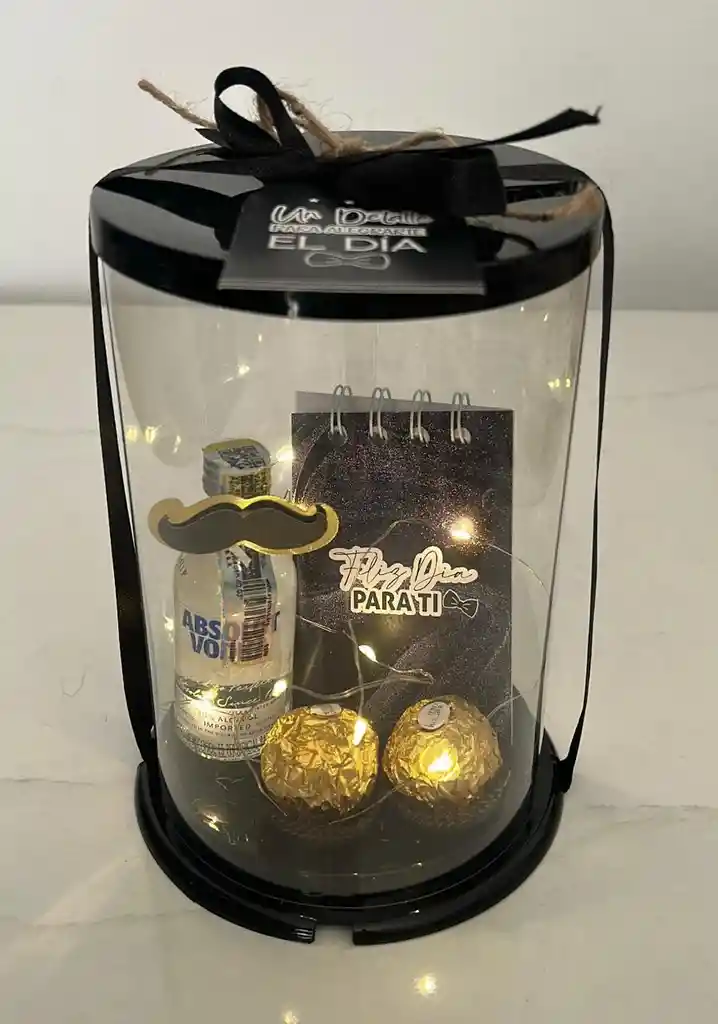 ANCHETAS DETALLES O REGALOS PARA HOMBRE CILINDRO LIBRETA MINI + VODKA MINI + CHOCOLATES FERREROS COD.1040-16