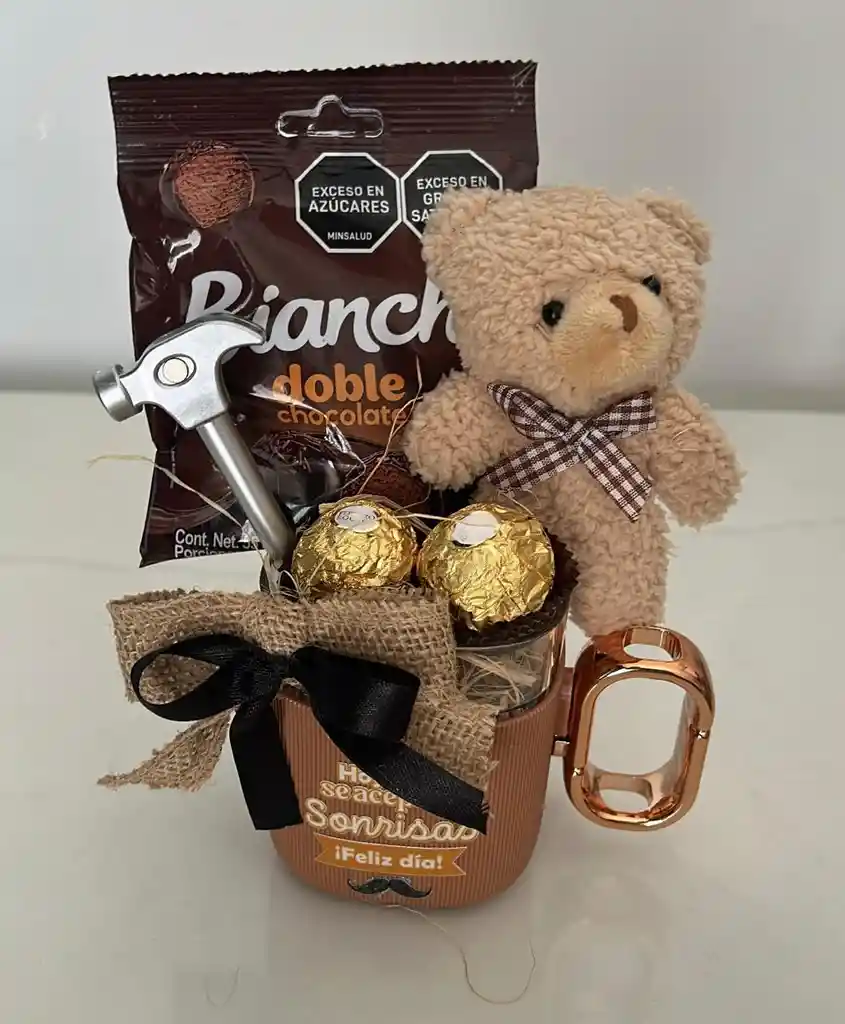 ANCHETAS DETALLES O REGALOS PARA HOMBRE MUG DE LUJO + LLAVERO OSO + LAPICERO HERRAMIENTA + CHOCOLATES FERRERO COD.1040-17