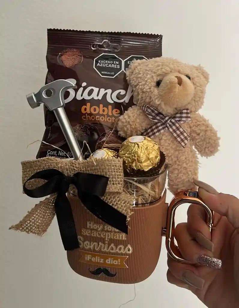 ANCHETAS DETALLES O REGALOS PARA HOMBRE MUG DE LUJO + LLAVERO OSO + LAPICERO HERRAMIENTA + CHOCOLATES FERRERO COD.1040-17