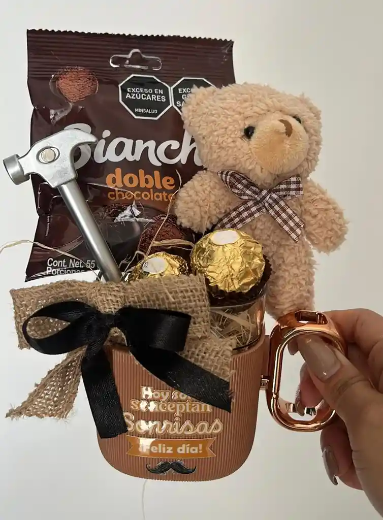 ANCHETAS DETALLES O REGALOS PARA HOMBRE MUG DE LUJO + LLAVERO OSO + LAPICERO HERRAMIENTA + CHOCOLATES FERRERO COD.1040-17