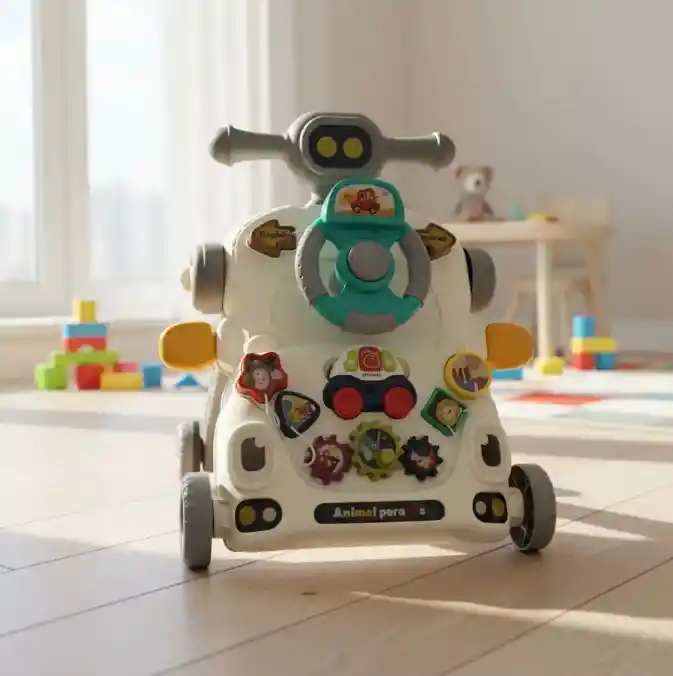 La Andadera Kidshop 3 EN 1 Mesa y actividades HE0801-1 es la opción ideal para acompañar a tu pequeño en sus primeros pasos. Diseñada para niños de 6 a 18 meses, este andador combina diversión y funcionalidad, permitiendo que los más pequeños exploren su entorno de manera segura y entretenida. Con un diseño atractivo de robot, la andadera incluye una mesa de actividades que estimula el desarrollo cognitivo y motor. Sus tres posiciones de altura se adaptan al crecimiento del niño, garantizando comodidad y seguridad en cada etapa. Además, cuenta con un sistema de sonido que añade un elemento interactivo a la experiencia de juego. Con un peso de solo 3.5 kg y un soporte máximo de 12 kg, es fácil de mover y almacenar. La barra de empuje proporciona estabilidad, permitiendo que los niños se sientan seguros mientras aprenden a caminar. La Andadera Kidshop es una herramienta perfecta para fomentar la movilidad y la curiosidad en los más pequeños.