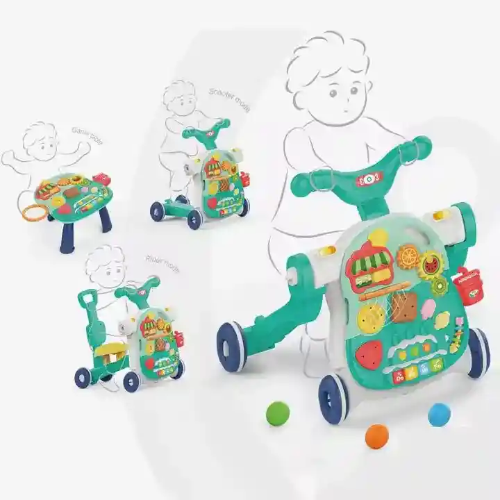 Centro de aprendizaje y diversión diseñado para acompañar el desarrollo del bebé desde sus primeros pasos. Combina múltiples funciones didácticas, musicales y sensoriales que estimulan la coordinación, el equilibrio y la motricidad fina. Contenido del producto: 1 andadera con estructura ajustable Panel frontal interactivo desmontable Características del producto: Diseño 5 en 1: caminador, panel didáctico, mesa de actividades, centro musical y juego de encaje. Panel interactivo con luces, sonidos y melodías educativas. Incluye botones, figuras, rodillos y piezas móviles. Estructura estable con ruedas antideslizantes y mango ergonómico. Material seguro, resistente y libre de bordes filosos. Colores llamativos que estimulan la atención del bebé. Beneficios de uso: Ayuda en el desarrollo de la motricidad gruesa y fina. Estimula los sentidos y la coordinación mano-ojo. Fomenta el aprendizaje y la independencia durante los primeros pasos. Especificaciones básicas: Tipo: Andadera didáctica musical multifuncional Modelo: 5 en 1 Material: Plástico ABS no tóxico Funciones: Musical, didáctica, motriz Edad recomendada: Desde 9 meses