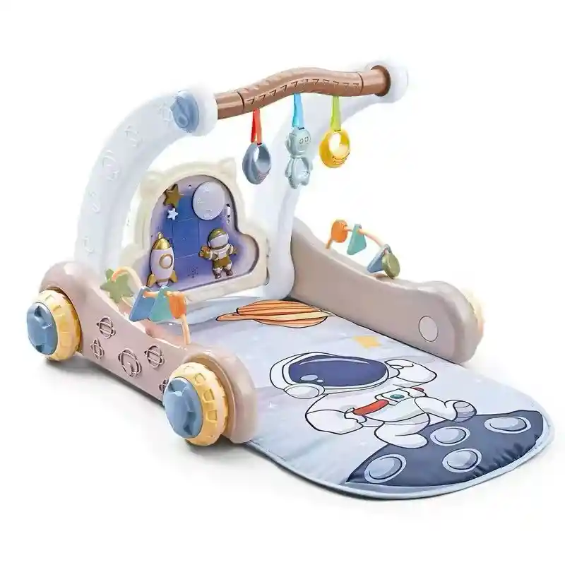 Andadera y gimnasio musical 2 en 1 – Diseño Astronauta Un producto versátil que crece con tu bebé, combinando estimulación temprana con apoyo en sus primeros pasos. Su diseño de astronauta lo hace visualmente atractivo, mientras que sus funciones didácticas y musicales lo convierten en una excelente herramienta de desarrollo. Características principales: 2 en 1: Función de gimnasio para estimular al bebé acostado y función de andadera para apoyar sus primeros pasos. Panel musical interactivo con botones, sonidos, luces y melodías educativas. Diseño ergonómico y resistente, con ruedas antideslizantes para mayor seguridad. Incluye juguetes colgantes, espejos y figuras móviles que favorecen la coordinación visual y motriz. Altura regulable, adaptándose a distintas etapas del desarrollo. Disponible en azul y rosado. Favorece el desarrollo sensorial, la coordinación ojo-mano, la motricidad gruesa y el equilibrio de forma divertida y segura. Ideal para bebés a partir de los 6 meses.