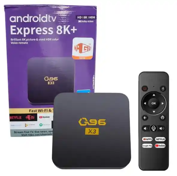 Android TV Box Q96 X3: Innovación para tu Entretenimiento Descubre una nueva forma de disfrutar tus contenidos favoritos con la Android TV Box Q96 X3, diseñada para ofrecerte calidad, velocidad y versatilidad en un solo dispositivo. Detalles Técnicos y Funciones: Sistema Operativo y Procesador: Sistema Android optimizado con Allwinner H3 Quad-Core (1.5 GHz). Más rápido y estable que generaciones anteriores, con menor uso de memoria. Soporte 3D y 4K: Decodificación de video 4K H.265, compatible con diversos formatos de audio y video. Calidad de imagen realista y video fluido en 4K a 60 fps. Conexión Estable: WiFi de 2.4 GHz para una conexión inalámbrica confiable. LAN Ethernet de 10/100 M para streaming sin interrupciones. Almacenamiento Ampliado: Memoria de 8 GB RAM y 128 GB ROM, ideal para multitarea y almacenamiento. Compatibilidad con tarjetas TF de hasta 128 GB para mayor espacio. NOTA: Garantía de 30 días por desperfecto de fábrica, no daños humanos.