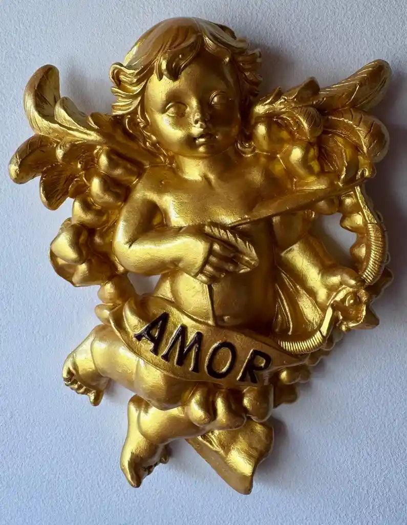 Llena tus espacios de ternura y significado con este hermoso ángel dorado con la palabra “Amor”, una pieza que simboliza la pureza, la protección y los sentimientos más sinceros. Su diseño delicado y lleno de detalles transmite dulzura y armonía, convirtiéndolo en el complemento perfecto para decorar tu hogar o regalar a alguien especial. El acabado dorado le da un toque elegante y luminoso que resalta en cualquier ambiente. Más que una figura, es un mensaje de amor y bendición que acompaña cada momento.