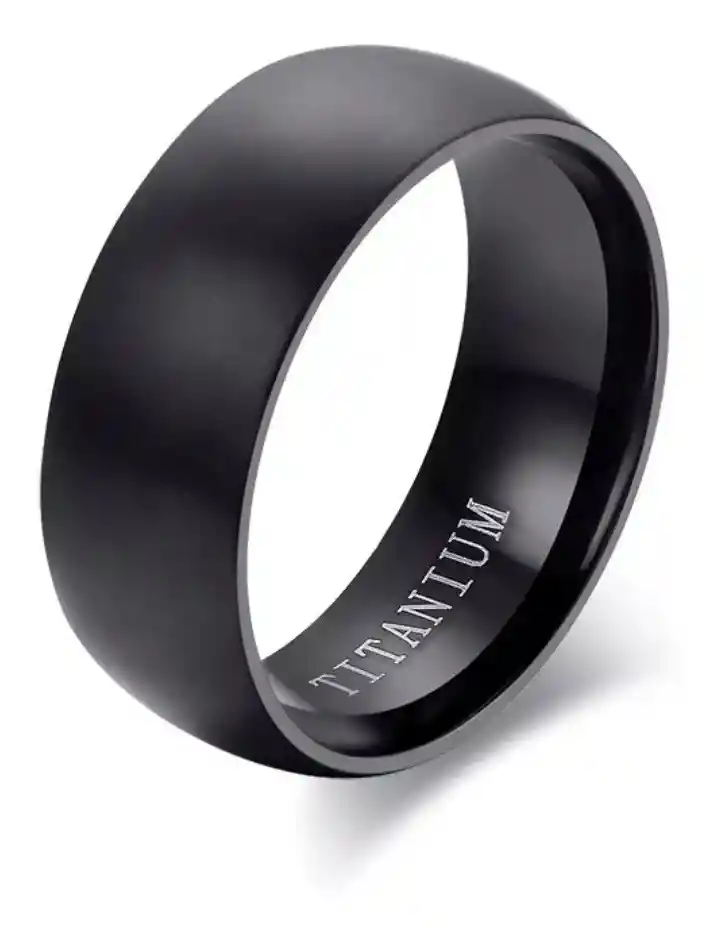 Hermoso anillo de acero Inoxidable 316L Titanio para hombre y mujer - Material: acero inoxidable titanio de alta calidad - no se oxida ni genera alergias - Color: Negro - Ancho: 8 mm - Excelente anillo para todo tipo de ocaciones Talla 8 = 18.5 mm de diámetro 5.8 cm de circunferencia
