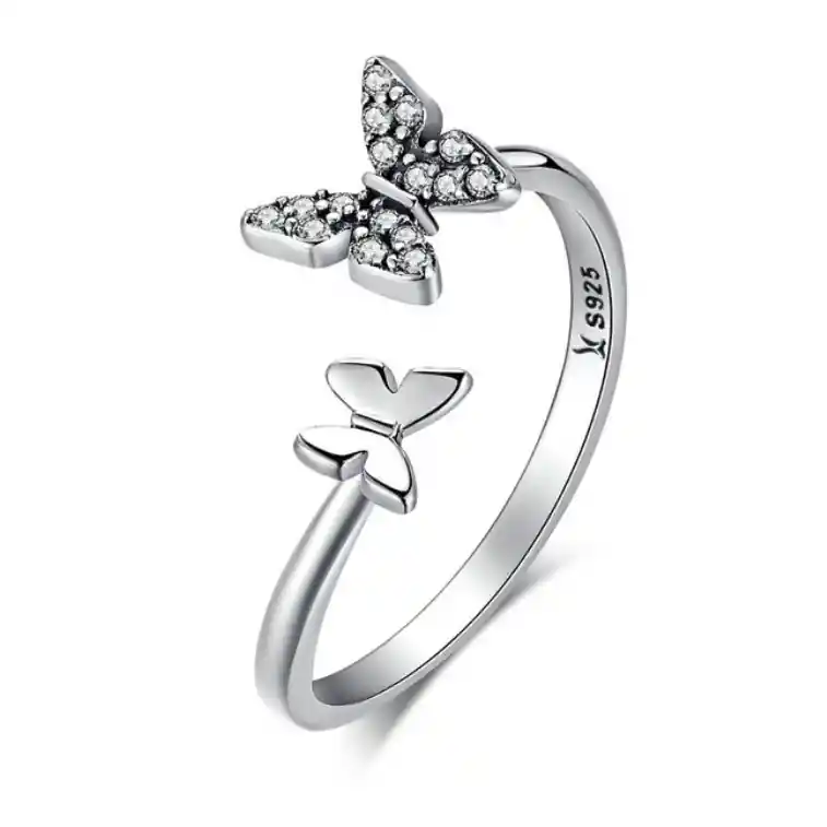 Anillo Ajustable Fabricado En Plata 925 - Anillo mariposas para mujer. - Fabricado en plata 925. - Talla ajustable: 6-9. - Incluye GRATIS estuche. - Joyería de diseño actual. - Ocasiones: compromiso, aniversarios y regalos especiales. - Producto importado.