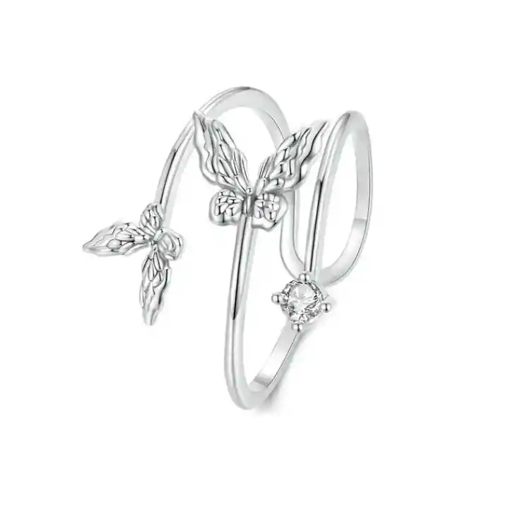 Anillo Ajustable Fabricado En Plata 925 - Anillo mariposas para mujer. - Fabricado en plata 925. - Talla ajustable: 6-9. - Incluye GRATIS estuche. - Joyería de diseño actual. - Ocasiones: compromiso, aniversarios y regalos especiales. - Producto importado.
