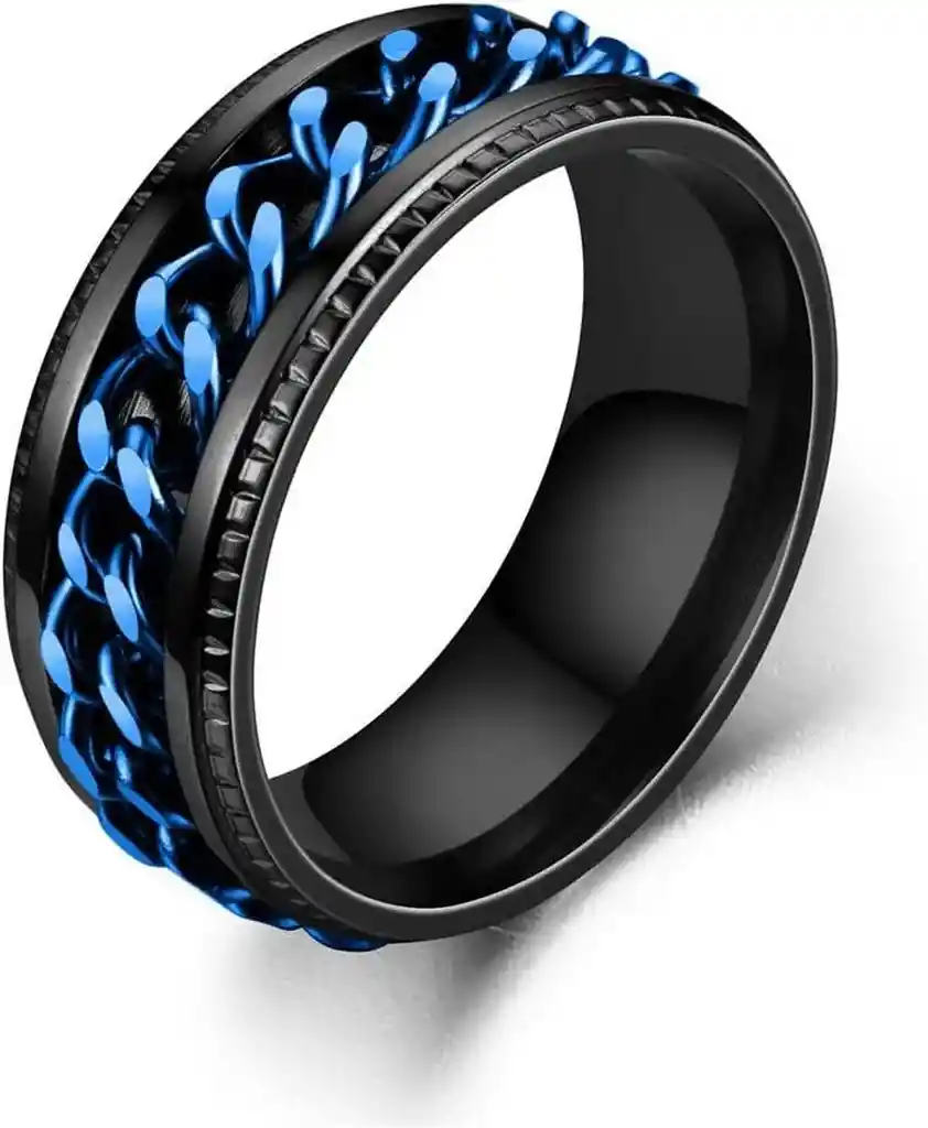 Anillo Cadena De Eslabones Giratoria Acero Azul Talla 11