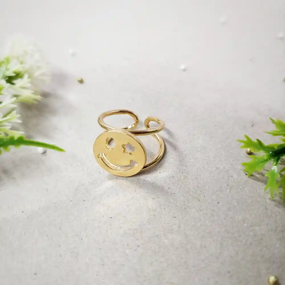 Diseño con figura de carita feliz, delicado y divertido. Baño de Oro de 24K.