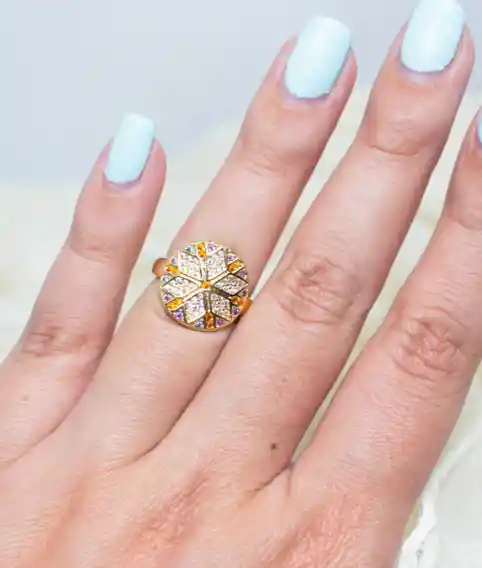 Anillo redondo de colores con incrustaciones de zircón,Cobre chapado en oro, Ajustable, peso: 5g, * NO aplicar alcohol