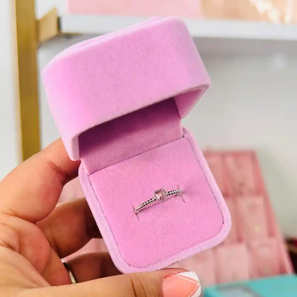 Anillo corazón rosa + cofre de joyería Anillo en rodio , talla ajustable Incluye cofre de joyería