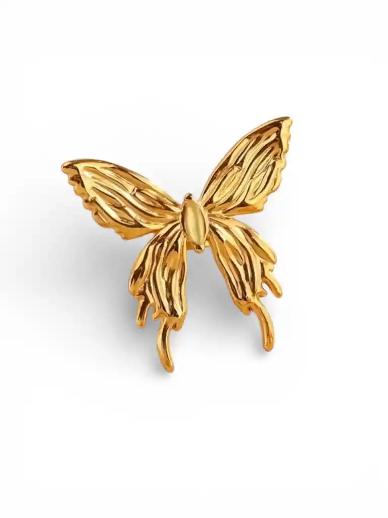 ANILLO DE ACERO MARIPOSA DORADO CON CHAPA DE ORO 18K TAMAÑO #8 DE MUJER AJUSTABLE